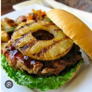 Булочка XXL, сочный айсберг, куриная котлета, ананас, ломтик сыра, соус барбекю